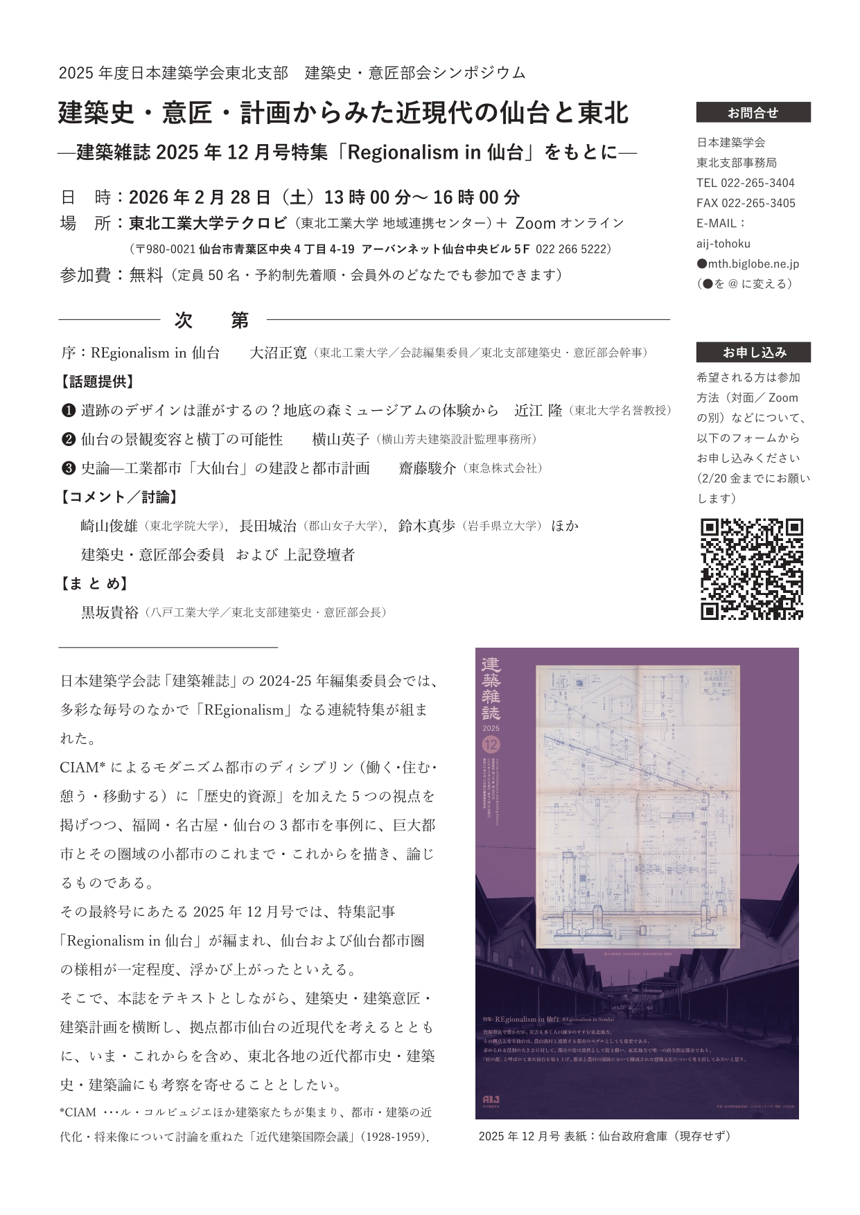 ―建築雑誌2025年12月号特集「Regionalism in 仙台」をともに―